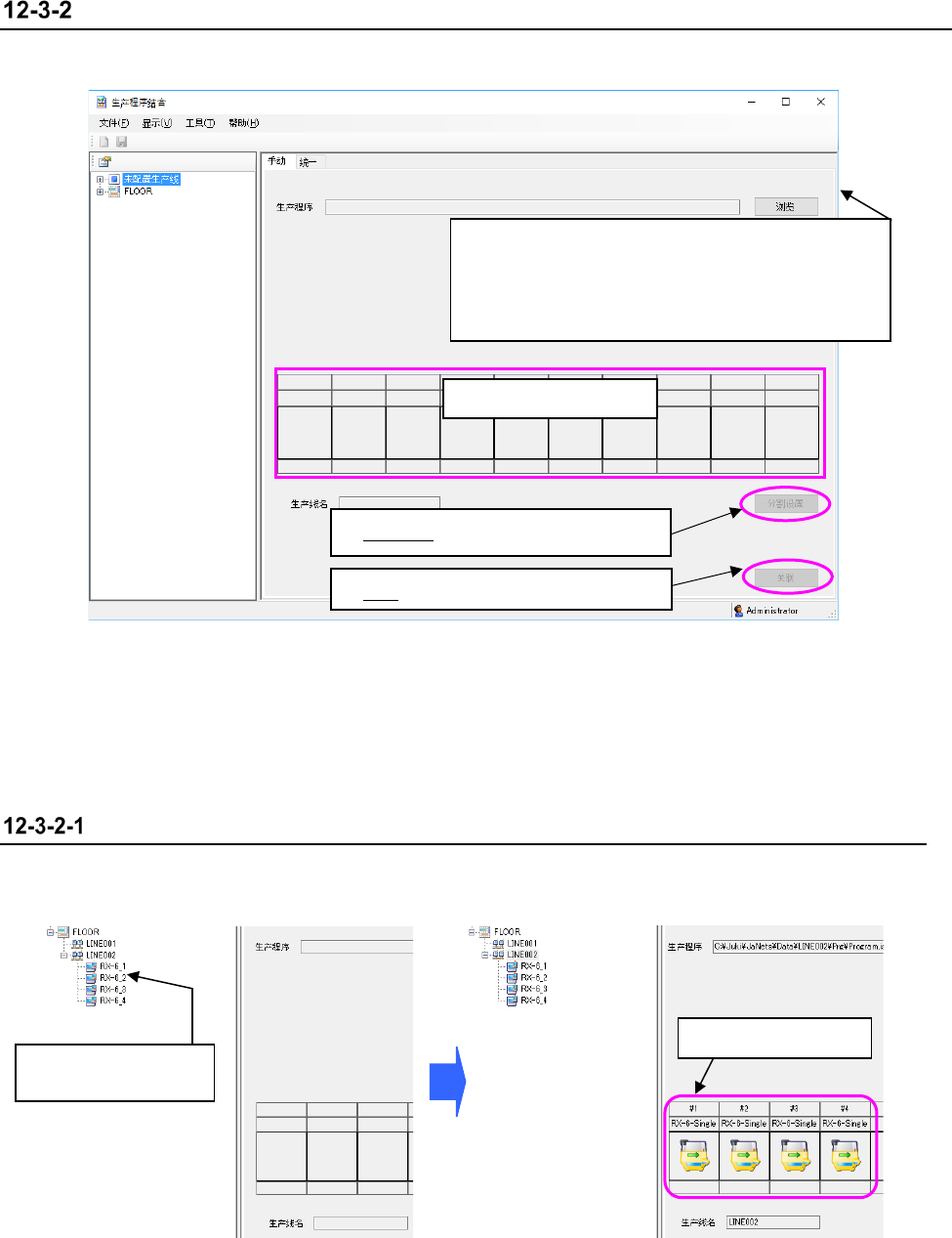 JaNets 使用说明书 12 生产程序结合 12 -5 手 动关联的步骤 按下面①~④的 顺序进行操作。 初始显示时生 产程序、对象生 产线均显示空 白。 图 12 -3-3 手动关联画面 并非必须选择建 立关联的生产程 序。 不选择(空栏) 也可建立关联。 此种情况时, 可建立新的生产 程序。 选择生产线 指定要关联的生 产线。 图 12 -3-4 选择生产线 ※ 但有时 RX -7 系列 分割文件中有未完 成的基板数据 ,所以生 …