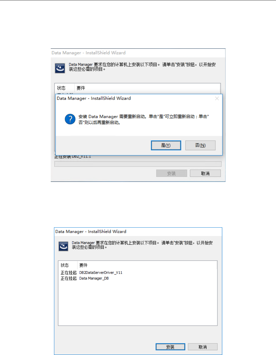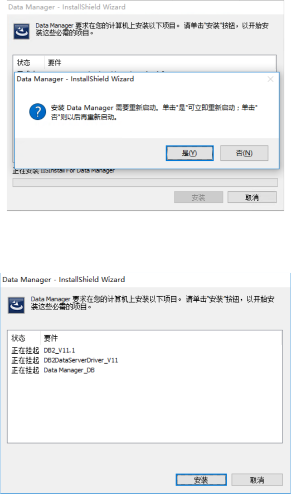 安装完 DB2 之后,显示重新启动的要求。