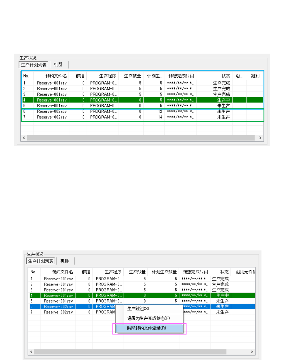 的预约文件。不能删除生产计划表开头的预约文件及包含生产状态程序的预约文件。
