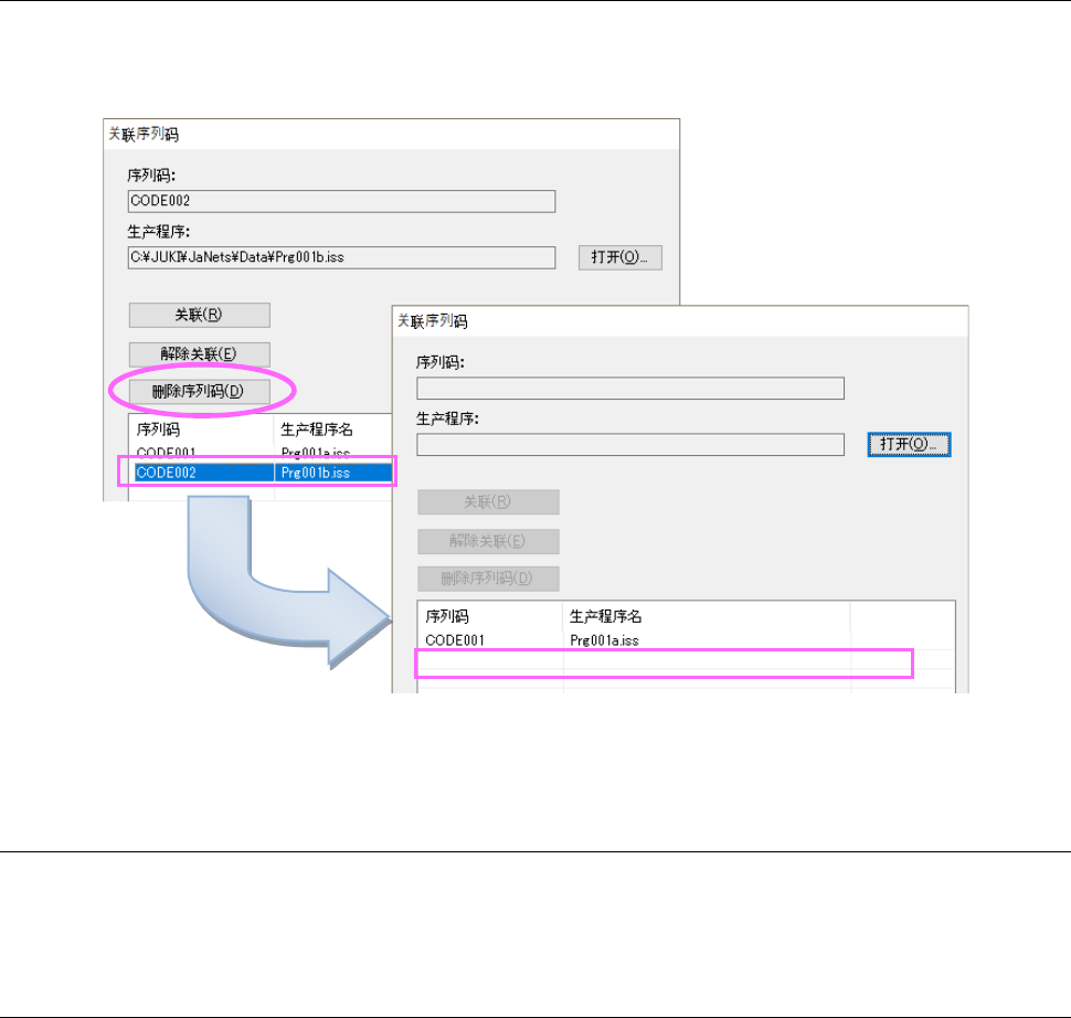 解除关联就是从序列码、生产程序的关联信息中,删除生产程序相关的信息。在列表中选择希望解