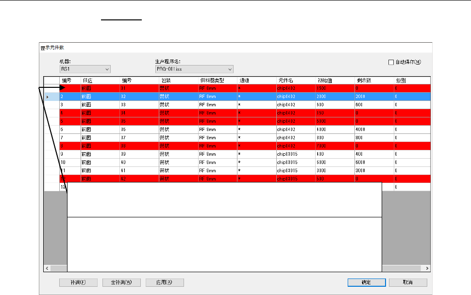 信息。仅显示生产的贴片相关信息。生产结束后,显示的数据会被清除。