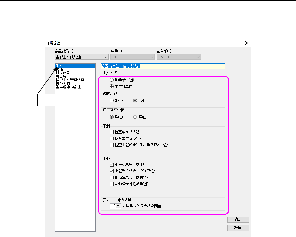 可以从「设置对象」,选择使用全生产线都适用的共通设定,还是选择使用各车间/各生产线的单独