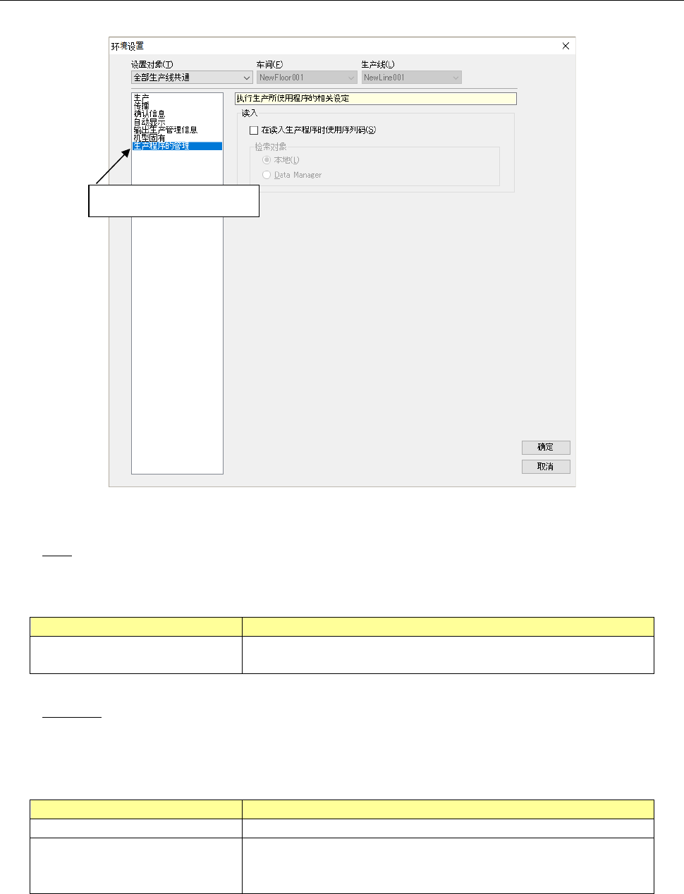 设置检索生产程序与序列码关联信息的对象。将「在读入生产程序时使用序列码」设为有效时可