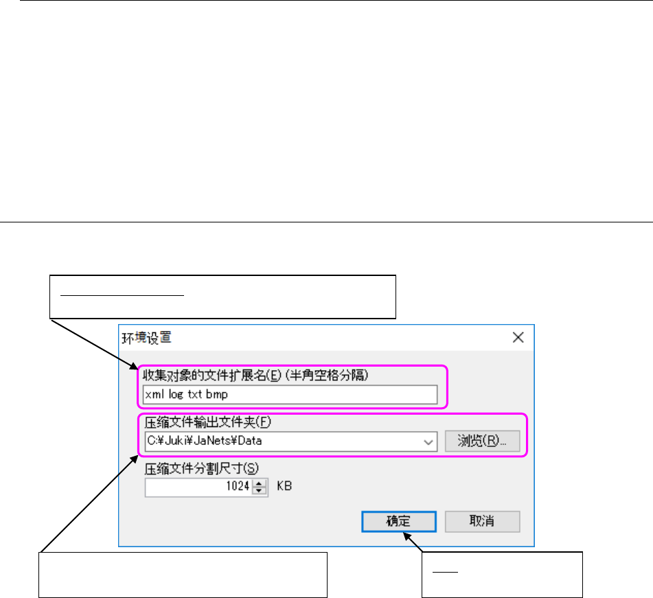 J aN ets 使用说明书 14 Snap shot (快 照)工具 14 -6 14 -3- 1-2 分割压缩文件 当压缩文件的大小超过环境设置中的「压缩文件的分 割尺寸」的设置值时,会显示是否进行文件 分割的询问提示信息 ,点击「 确定」则开始进行 文件 的分割。 当文件的分割结束时 会显示 “ 收集结束 ” 的信 息框,点 击「确定」 则返回到 Snapshot 工具画面。 分割的文件名为 “ 压 缩位置 文件名 .1, 2, …