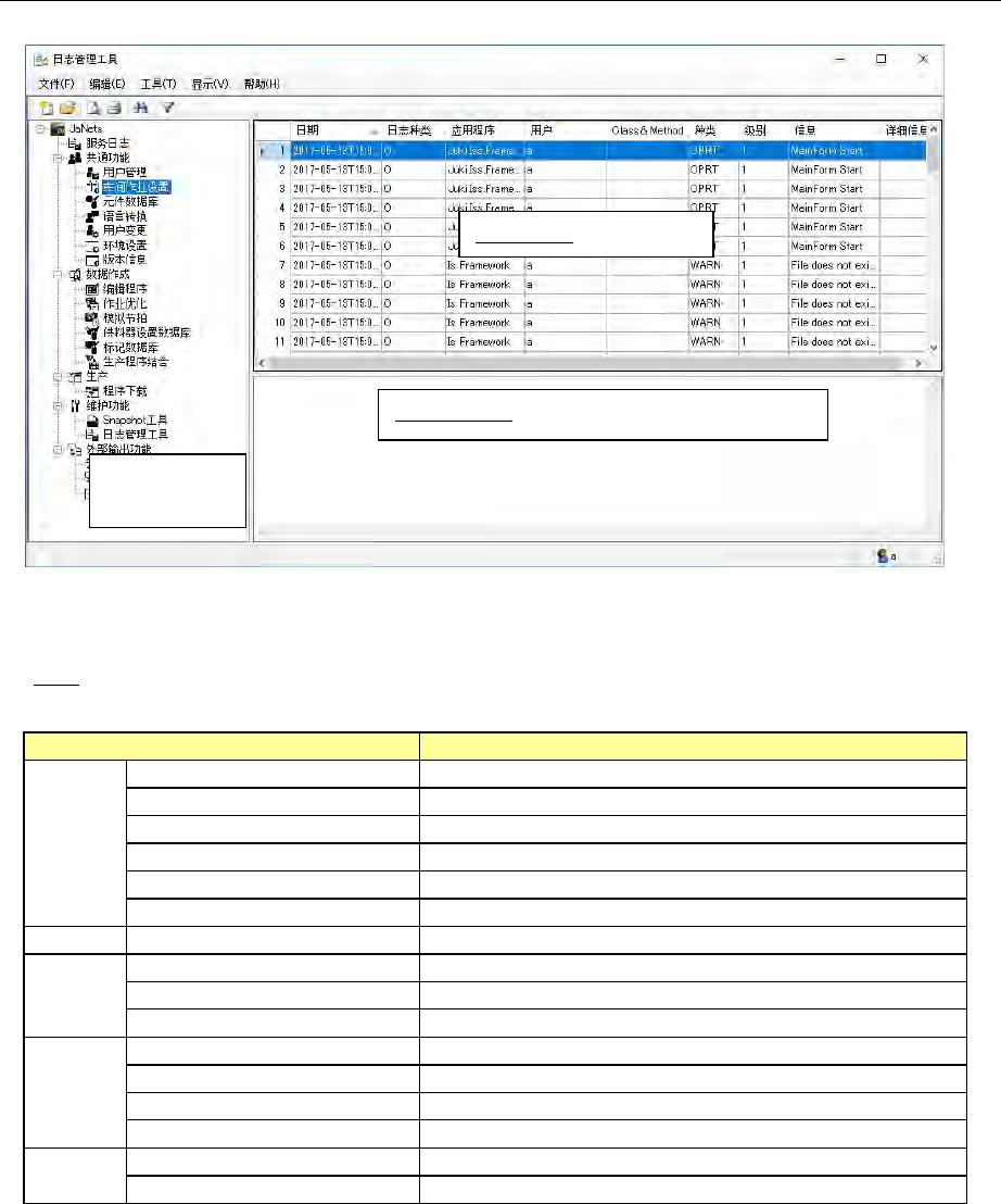 JaNet s 使用说明书 15 日志管理工具 15 -3 15 -1-3 用 程序用树形控件 图 15 -1-3 应 用程序用树形 控件画面 15 -1-3-1 关于项目选择 范围 图 15 -1-4 应用程序用树形控件 应用程序名: 对选择的应用程序日志进 行管理。 设置范围 显示已安装的应用程序。 JaNet s 的 设置范围 JaNet s : 对安装的所有应用程 序的日志进行统一管理。 共通功能 / 数据作成 / 维护 功能 …