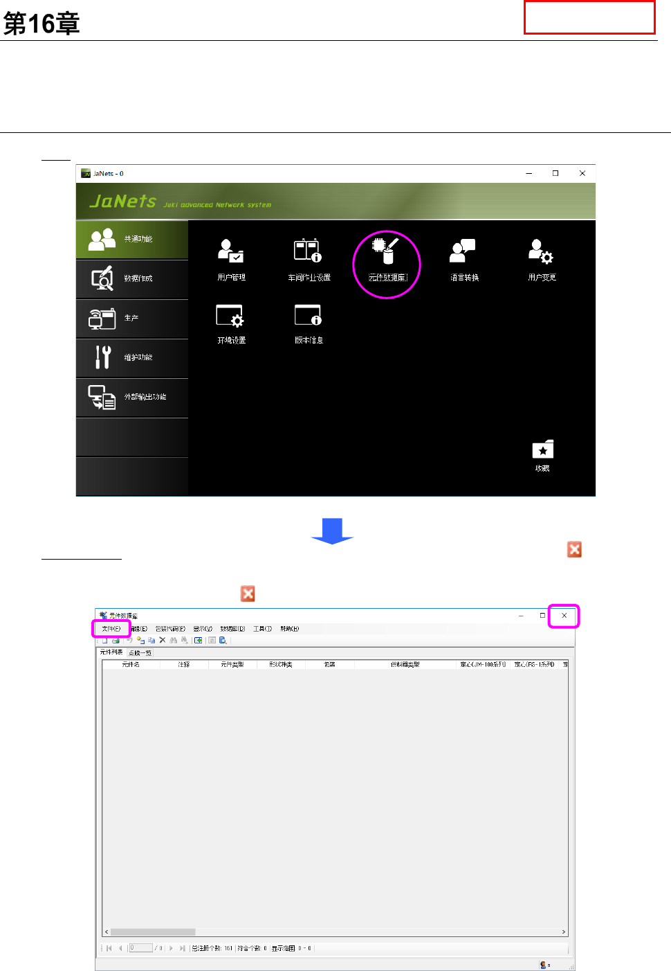启动:双击 JaNets 平台的「共通功能」‐「元件数据库」。
