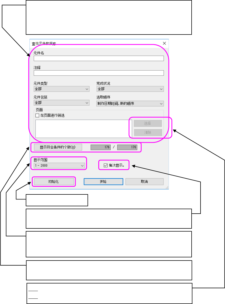 启动元件数据库时,或选择「数据库」-「重新查找」,会显示元件数据库的查找画面。