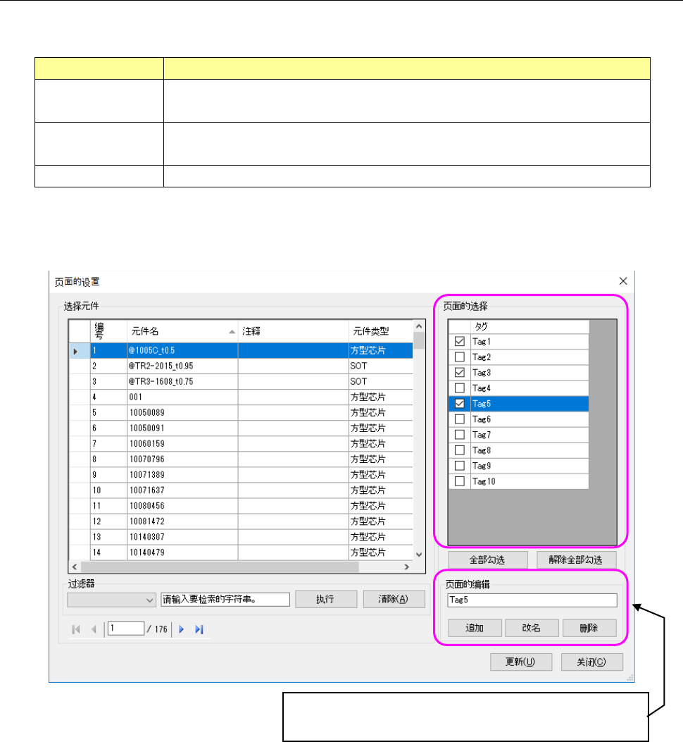 输入在页面列表中选择(不可多选)的页面名(※1),按下此按钮,可以更