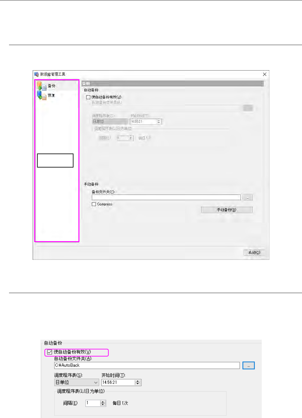 自动备份的设定,要从退出「数据库管理工具」时保存设定时起,才会实际反映。