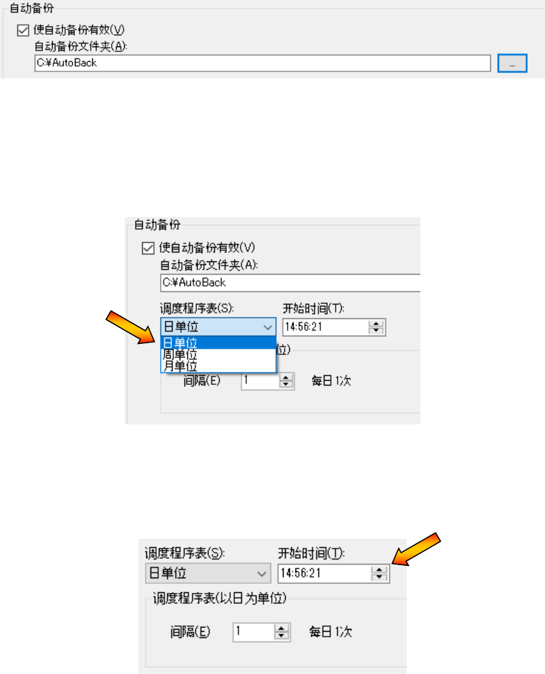 但如果输入了 29~31,而该月的日数不足所选择的日数时,备份将不被执行。