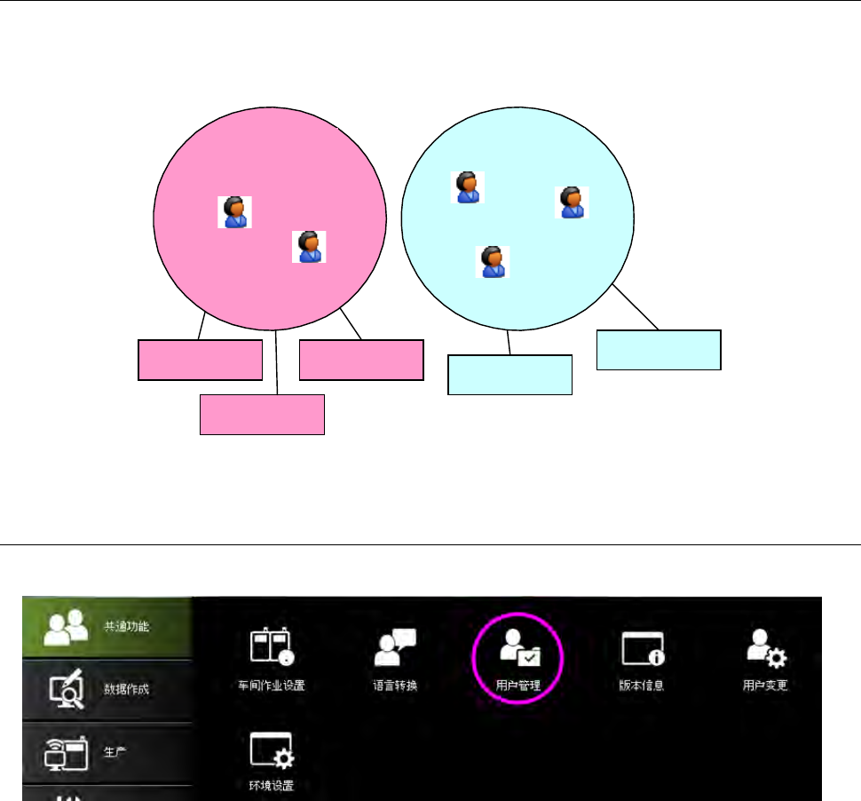 JaNets 使用说明书 4 用户管理 4-1 第 4 章 用户管理 什么是用户管 理 ? 将用户分为组, 对组统一定义操 作权限、显示 设置。 ユーザ1 ユーザ2 ユーザ3 ユーザグ ループ1 ユーザグ ループ2 ユーザ4 ユーザ5 操作権限1 操作権限3 操作権限2 操作権限4 操作権限5 图 4-1 组和用户的关系 4-1 启动用 户管理 启动:选择 JaN ets 平台的 「共通功能」「 用户管理」,或 选择「用户管 理」 ‐ …