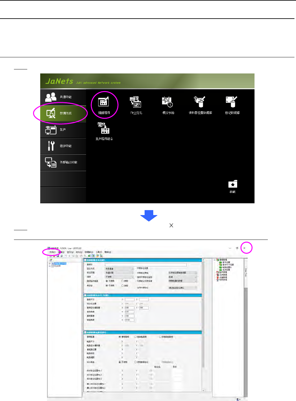 启动:从 JaNets Launcher 里选择「数据作成」,双击「编辑程序」。