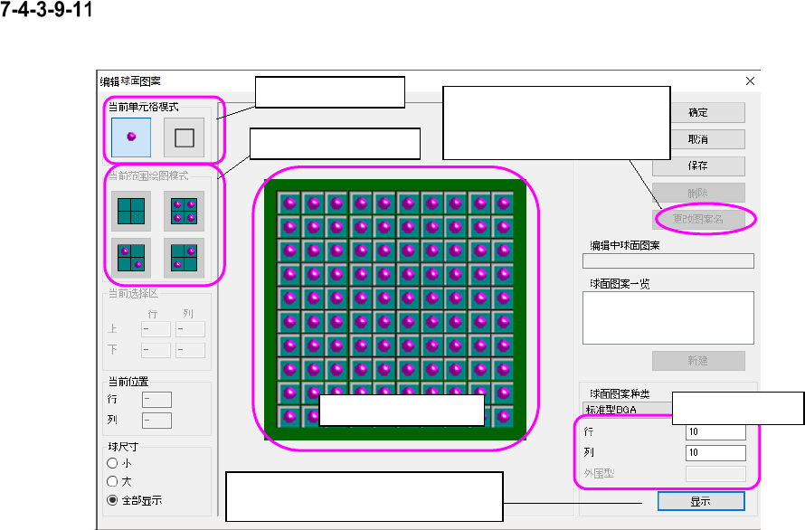 显示引脚或球面是以怎样的模式配置在元件上的。