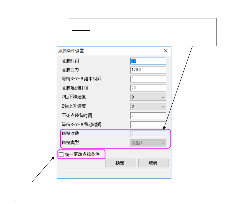 这个变更与「统一更改点胶条件」的设置无关。