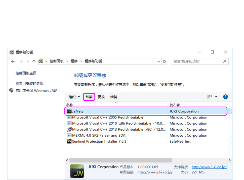 【JaNets】,单击「卸载」。