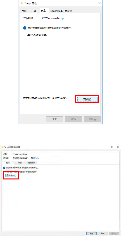 显示安全页面,请确认是否为 Everyone 权限。如果没有请添加 Everyone 权限,并将权限设为完