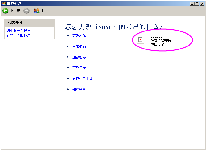 (8) 返回账户变更画面。这时,请确认账户的位置已有「密码保护」的文字提示。