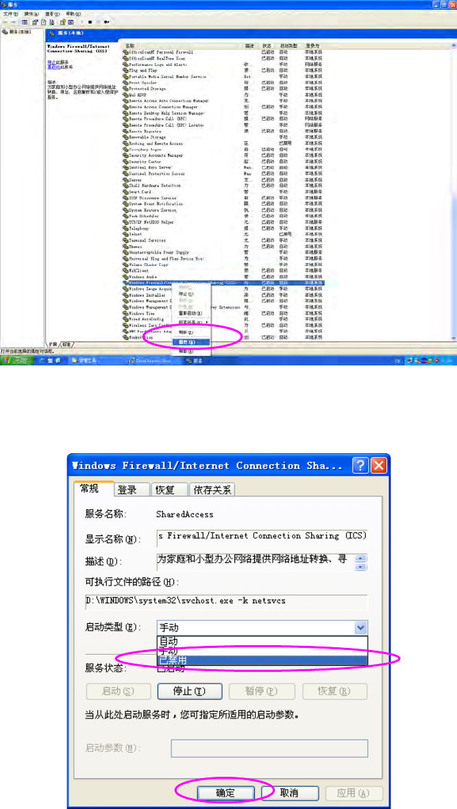 (3) 如果「Services」内的「Windows Firewall/Internet Connection Sharing(ICS)」的「状态」