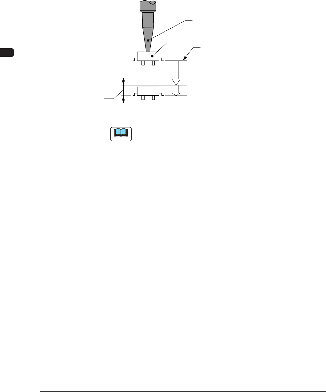 6OM-1602 第二章 2.4 (D01) 控制数据 2-103 (14) 速度数据 贴装减速 下降 2 设定 选择贴装下降时的第二阶段减速为 “ 设定 ( 手动 ) ” 、 “ 设定 ( 自动 ) ” 、 “ 不设定 ” 。 设定贴装减速,通过将贴装下限为止的剩余距离超低速下降,能够稳 定贴装精细元件。 (15) 速度数据 贴装减速 下降 2[%] 选择 “ 贴装减速 下降 2 设定 ” 为 “ 设定 ( 手动 ) ” 时设定。 设…