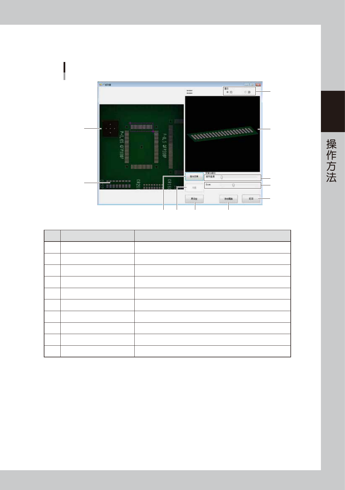 7 [ 显示变更 ] 按钮 使三维图像切换为常规显示或根据色阶显示高度。每按一次按钮就切换一次显示。