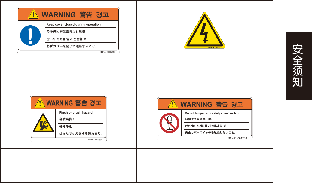 运行过程中或操作载料箱时,切勿将手伸入设备内。 请勿触碰或改装机门开关。请勿在机门开关解锁状态下运行设备。