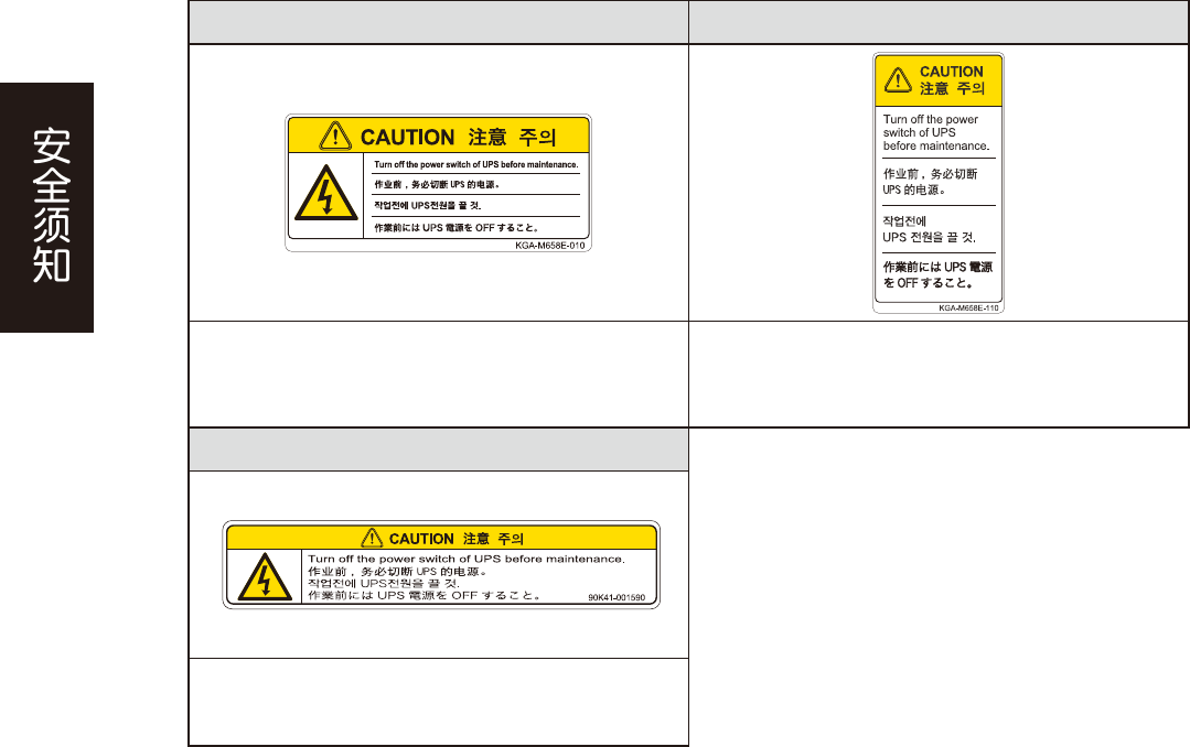 请关闭 UPS 装置的开关后进行操作。 请关闭 UPS 装置的开关后进行操作。