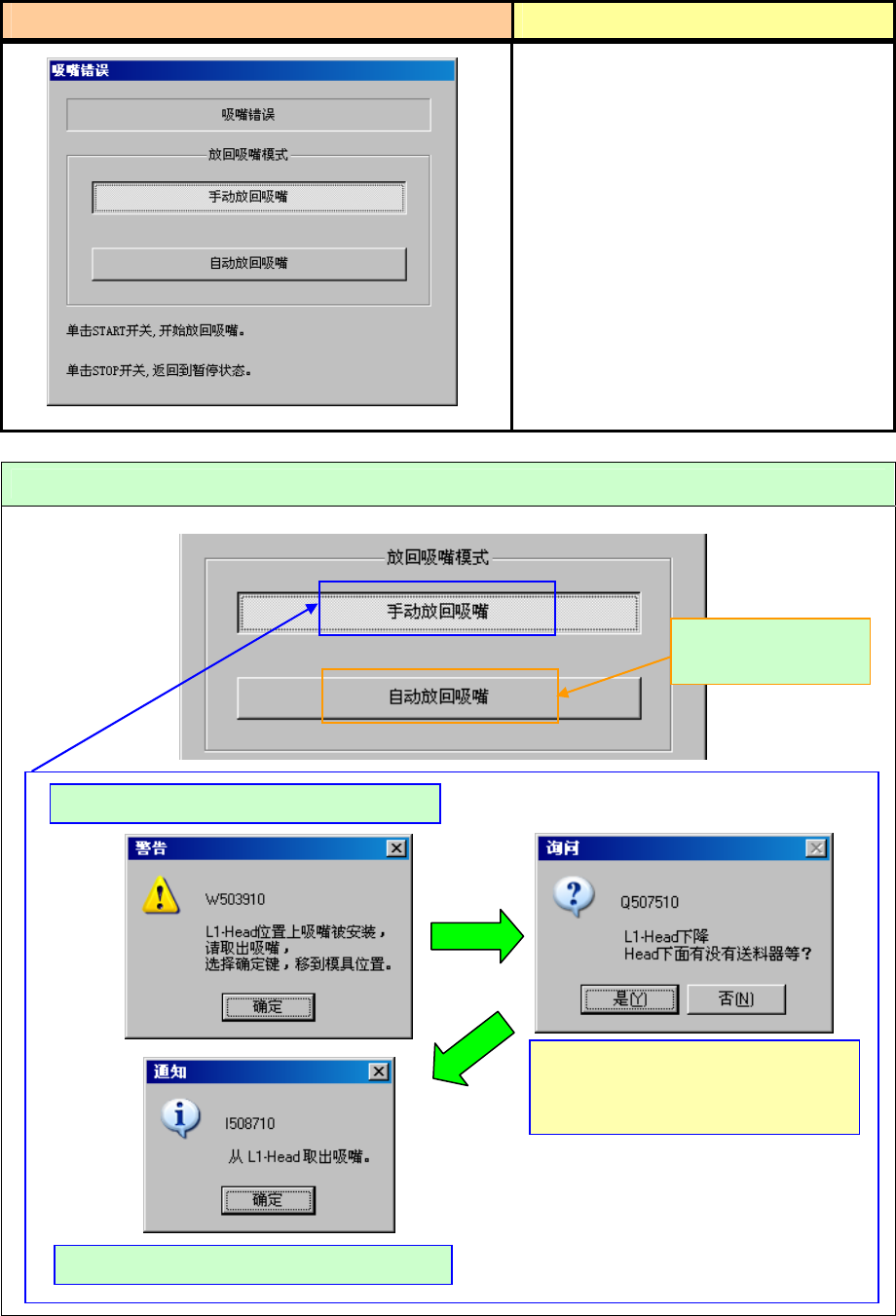 1) 请选择「放回吸嘴模式」,按下开始开关。