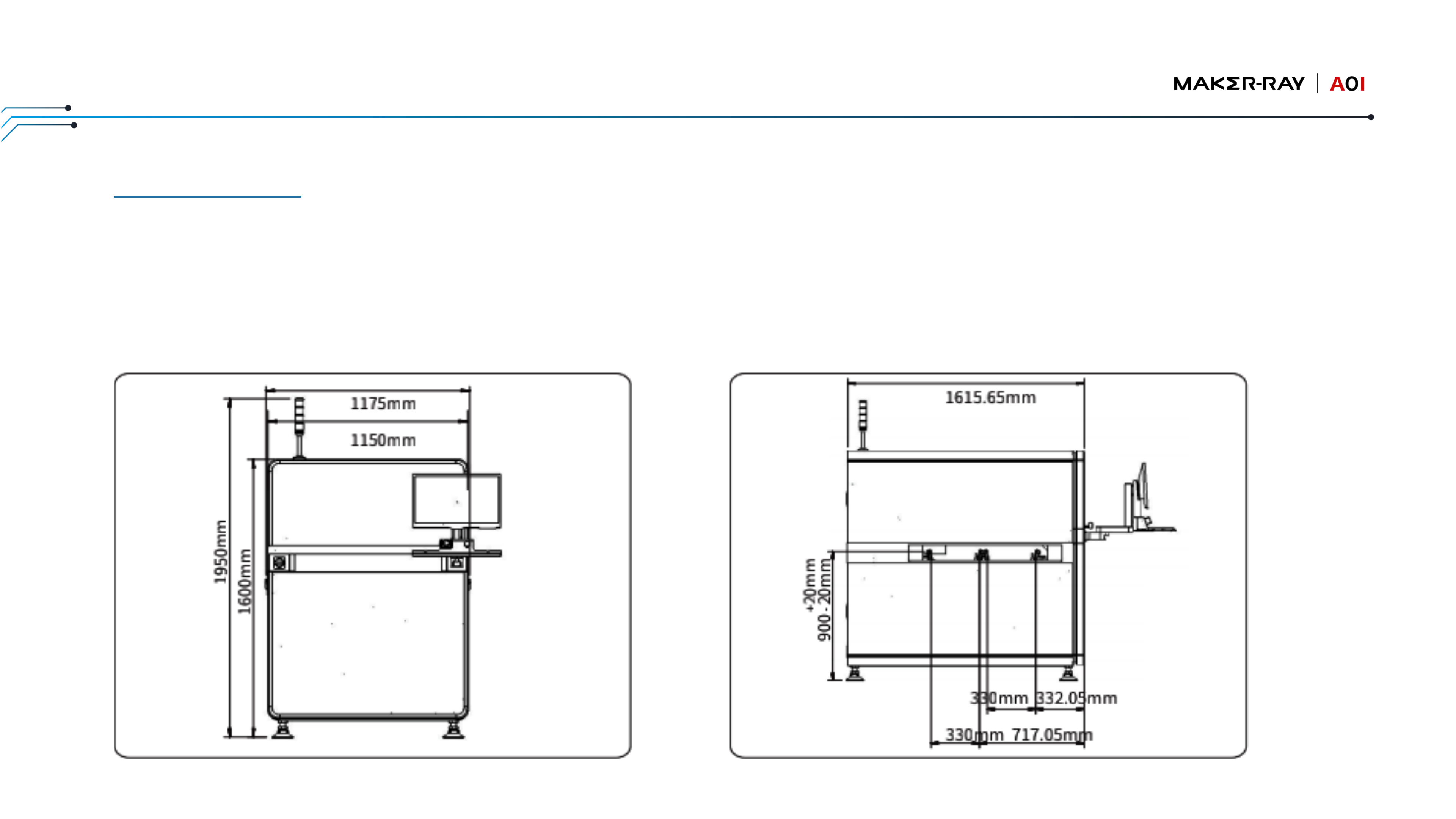AIS43XSeries -3D|设备架构 AIS431-D|双轨 PCBA规格尺⼨: 单轨50*50mm〜510*610mm(单轨⼤板模式最⼤⽀持680*610mm) 双轨50*50mm〜510*330mm(中间两轨道间距最⼩55mm)