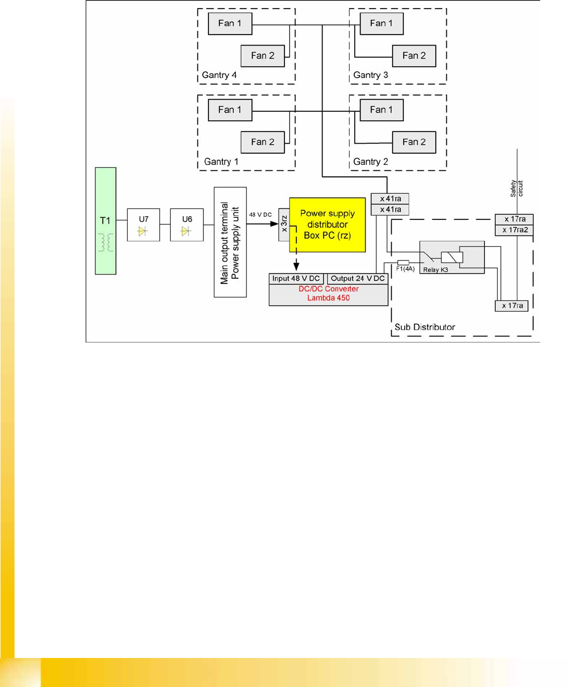 The fans are supplied with 24V from the computer unit by the DC/DC converter and are switched via the