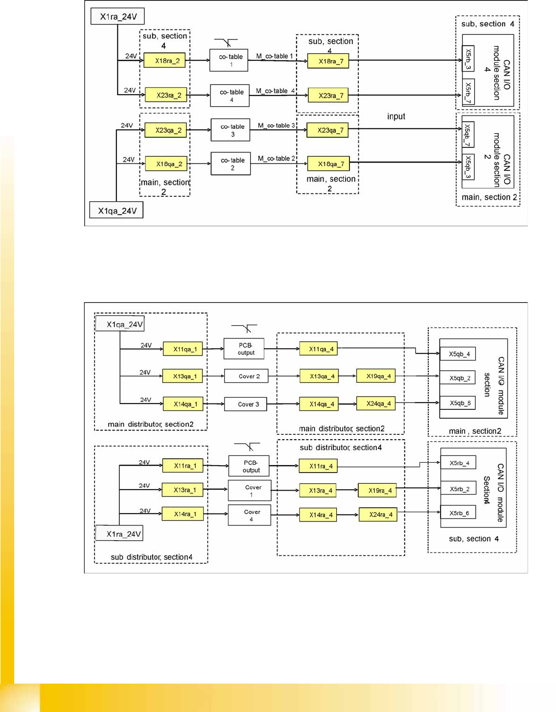 contact will close and the 24 V will be present at the input of the CAN I/O module in sector 4. The same
