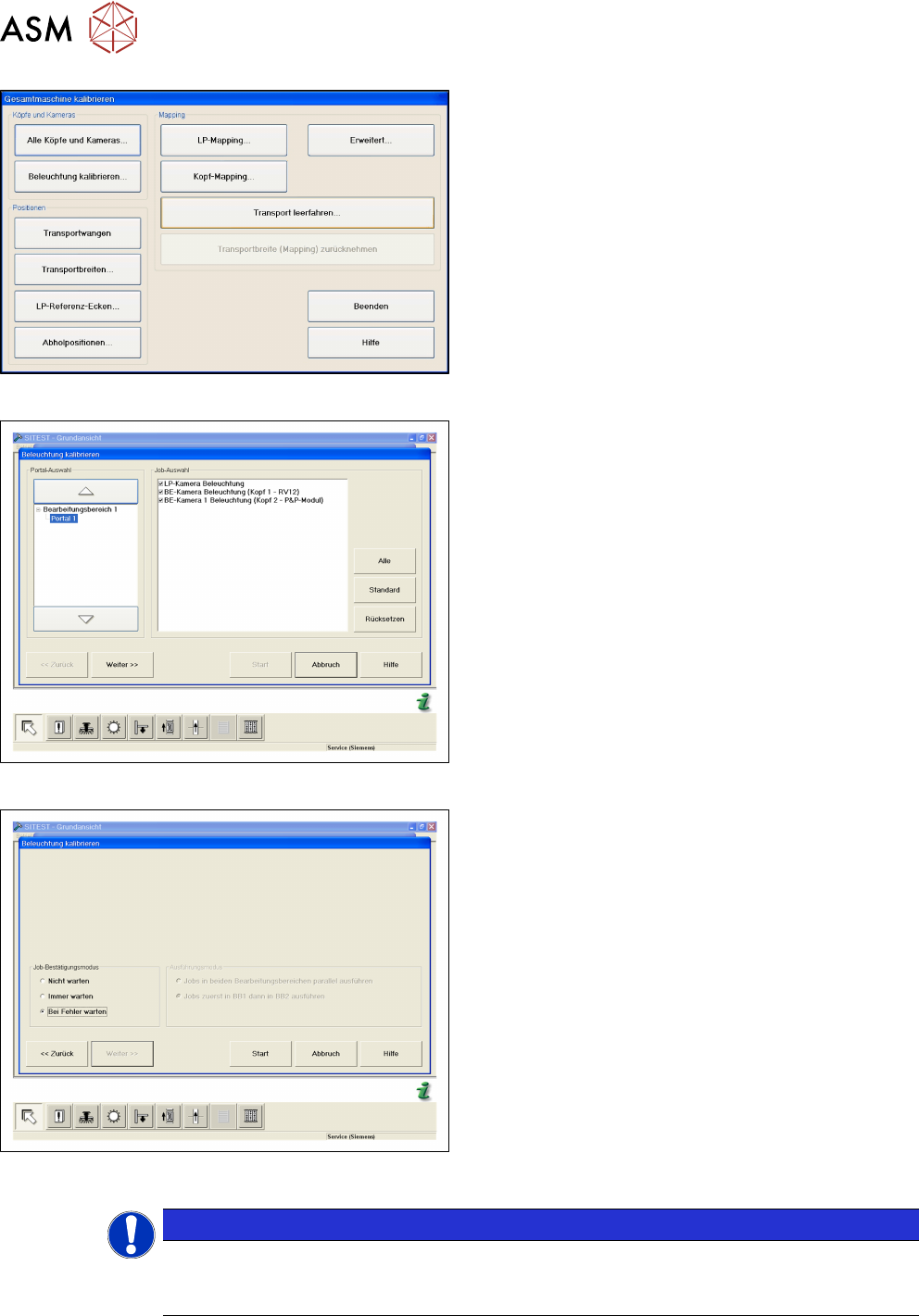 empfohlen einen Trockenlauf der Kamerakalibrierung ohne ein Speichern der Kalibrierwer-