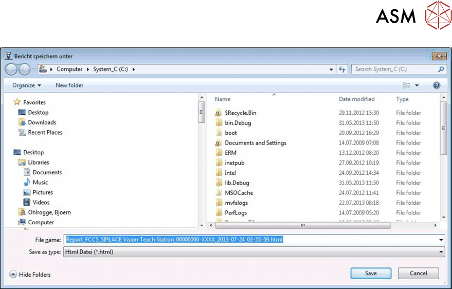 Nach der Erstellung kann der HTML-Bericht in einem "Speichern unter"-Dialog im Dateisystem ge-