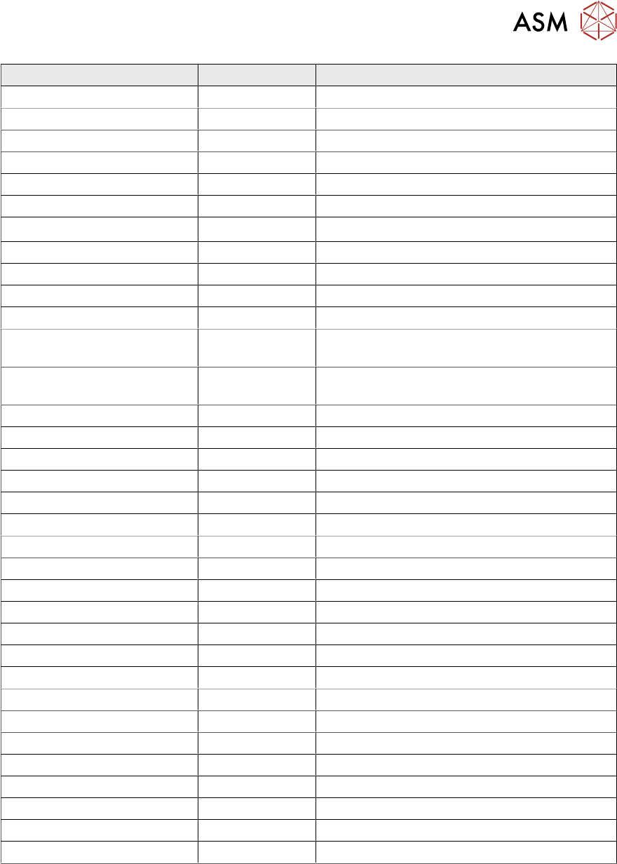Parameter name Value of camera Comment