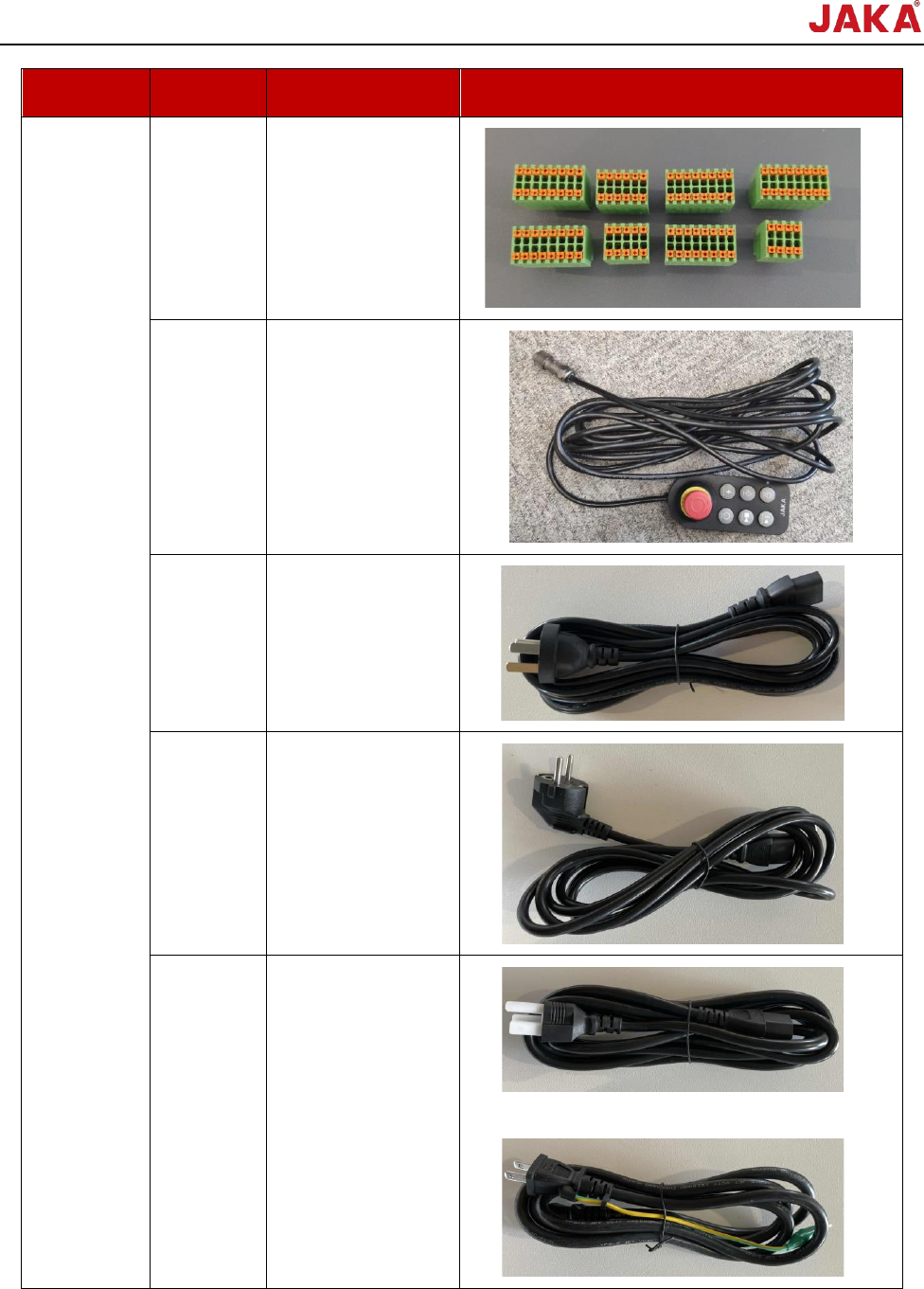 文档版本: 3.1 1 16 / 201 节卡服务手册 机型 编号 名称 图片 GSCB.04 控制柜端子 GSCB.05 手柄 GSCB.06 电源线(国标) GSCB.07 电源线(欧标) GSCB.08 电源线(美标) 或