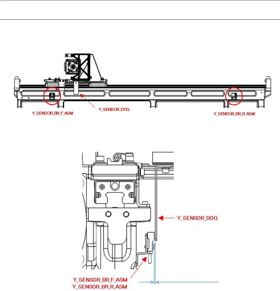 2) 后方固定时,要使 Y 传感器止动卡具与传感器表面的空隙为 1.8~2.5mm(目标是 2.0mm)。