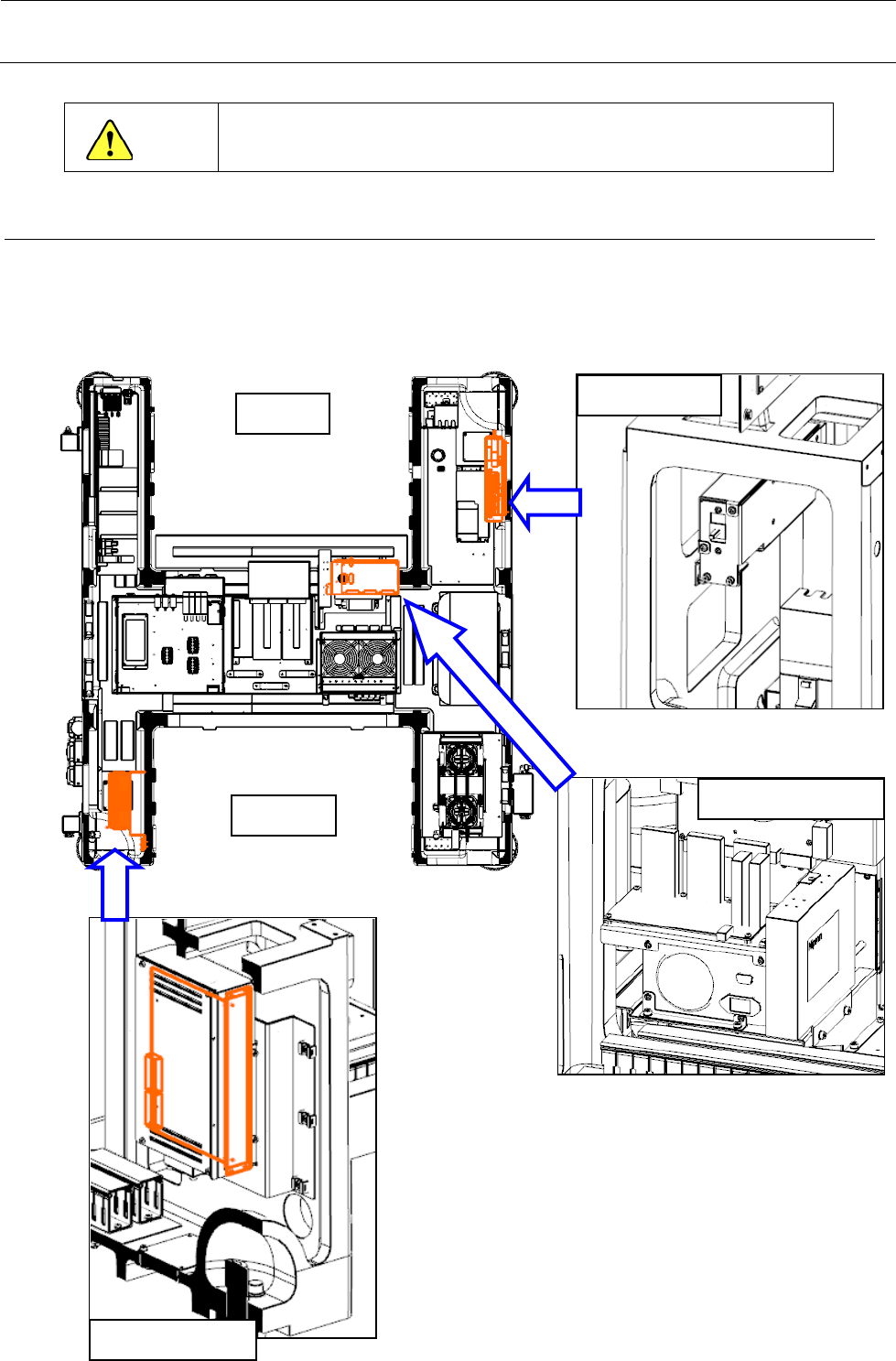 电气设备内的共面性电源、CPU 板、监视器切换板的配置如下图所示。