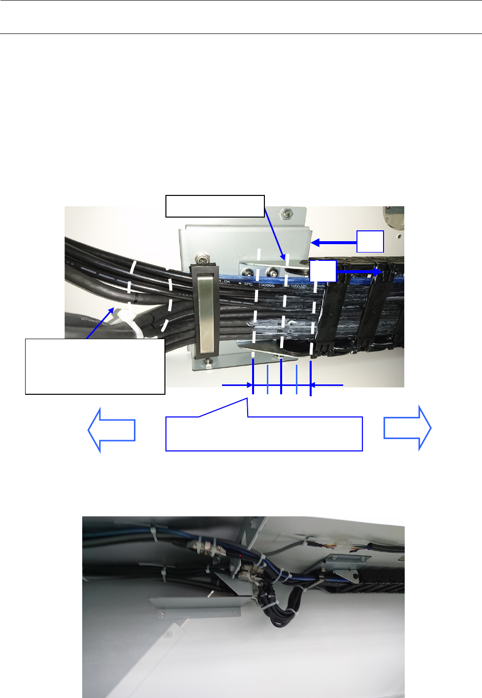 调整线束,使 2 条记号的中间位置成为 Y 电缆拖链的端部(移动端部),予以固定。