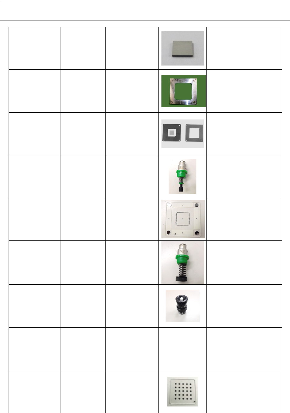 维修调整要领书 A-3 40132976 基准砝码 2kg 测力计参数 RX-6 RX-6B 通用 40132977 基准砝码 1kg 测力计参数 RX-6 RX-6B 通用 40098180 共面性调节 治具 共面性偏差 KE-3020VA KE-3020VRA 通用 PH0600282U0 平行销 φ6 L=28 共面性组装 KE-3020VA KE-3020VRA 通用 E2155998000 QFP 夹具 20 (无高低差) 用…