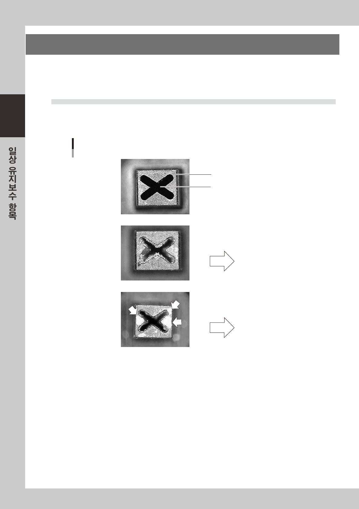 상기의확인을실행한상태에서노즐의오염또는노즐막힘이발견된경우는 ,즉시제 3 장「1.1노즐의점검과청소」의설명에