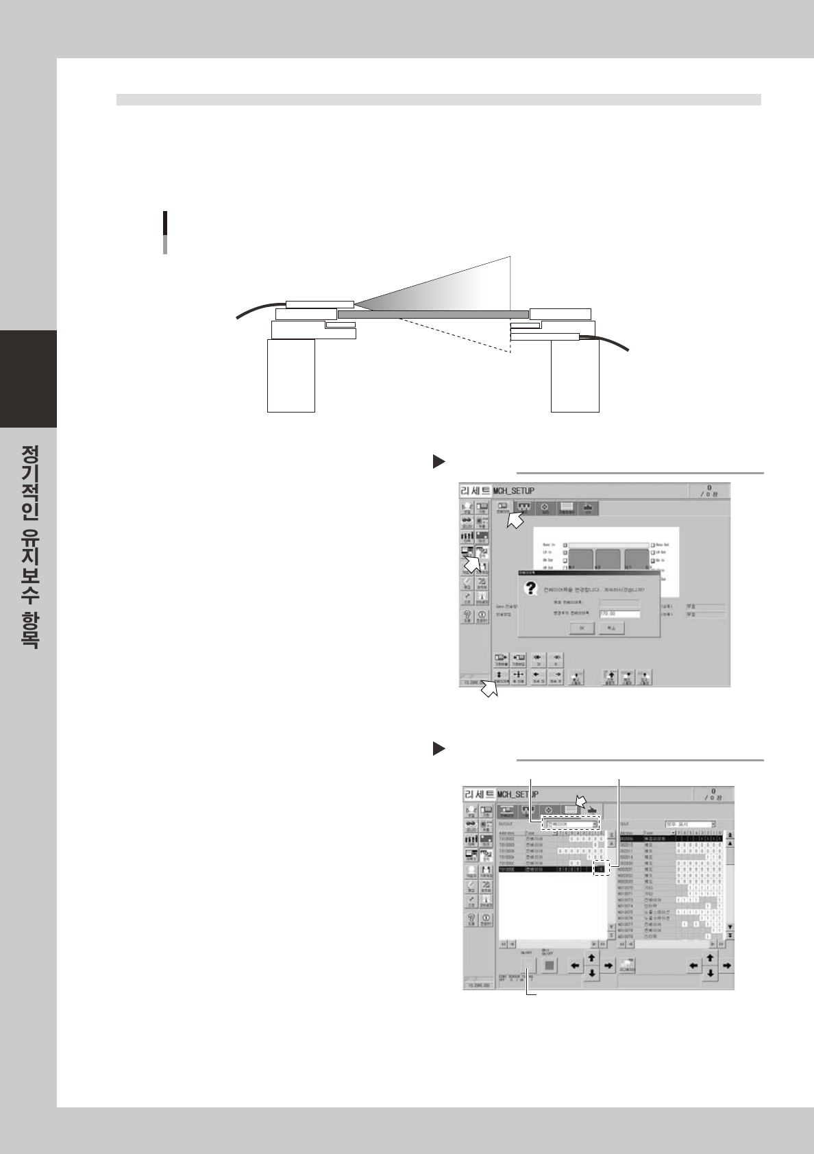 3-4 3 1 .2 컨베이 어부 1 .2. 1 컨베이 어 센서의 상태 • 동 작확 인 본 장비 에서 는 컨 베 이 어 센서 로 서 투 과형 파이 버 센서를 사 용하 고 있 습니 다 . 컨 베 이 어 레 일 폭 을 변 경해 도 센서 가 정확하 게 동작 하 는지 확인할 필 요 가 있 습니 다 . 컨베이어 센서의 상태, 동작확인 투광 수광 5730 3 - N 8 - 0 0 1 「장치」 - 「컨베이…
