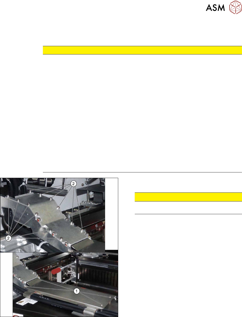 6 Gantries 6.3 Trailing Cable and Printed Circuit Boards 108 Service Manual SIPLACE TX Series 06/2017 Fig.129: Trailing cable on the gantry CAUTION! Do not secure the screws(1) and(2) with Loctite. . 6.3.6.2 Replaci…
