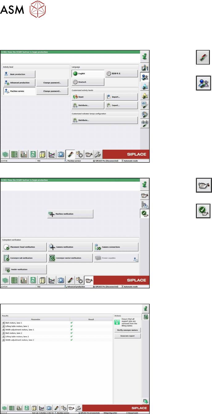 7 Conveyor 7.2 Lifting Table Service Manual SIPLACE TX Series 06/2017 145 7.2.6 Calibrating the Lifting Table Motor After completing the work on the lifting table, this will need to be calibrated. Procedure Fig.194: Sel…