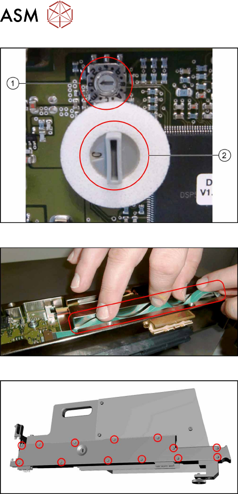 14 JEDEC Tray Feeder 14.1 SIPLACE JTF-ML 304 Service Manual SIPLACE TX Series 06/2017 Fig.440: Checking the switches ► Check the switches for addressing and commu- nication protocol: 1. The small switch must be set to &…