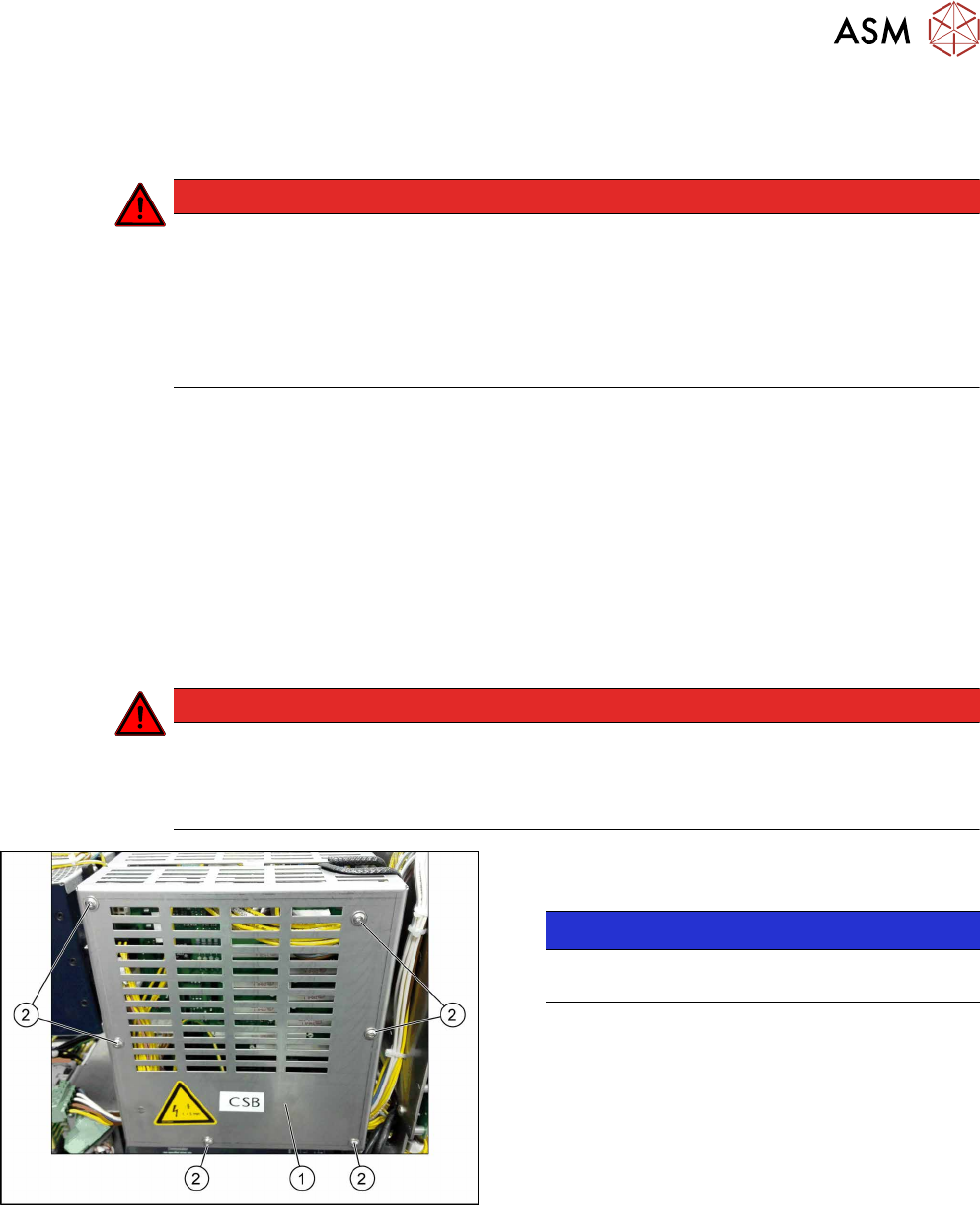 3 SMPS 3.6 Replacing the CSB (Contactor Safety Breaker) or the CSB Cover 50 Service Manual SIPLACE TX Series 06/2017 Fig.45: Unplugging the electrical connections at the front ► Unplug the electrical connections (1) . …