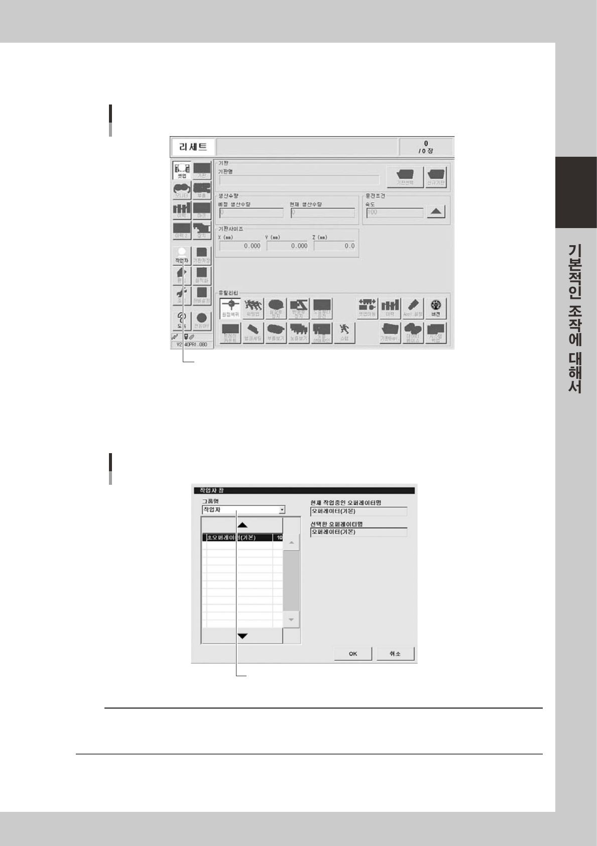 [작업자]버튼을 눌러「작업자 창」을 연다