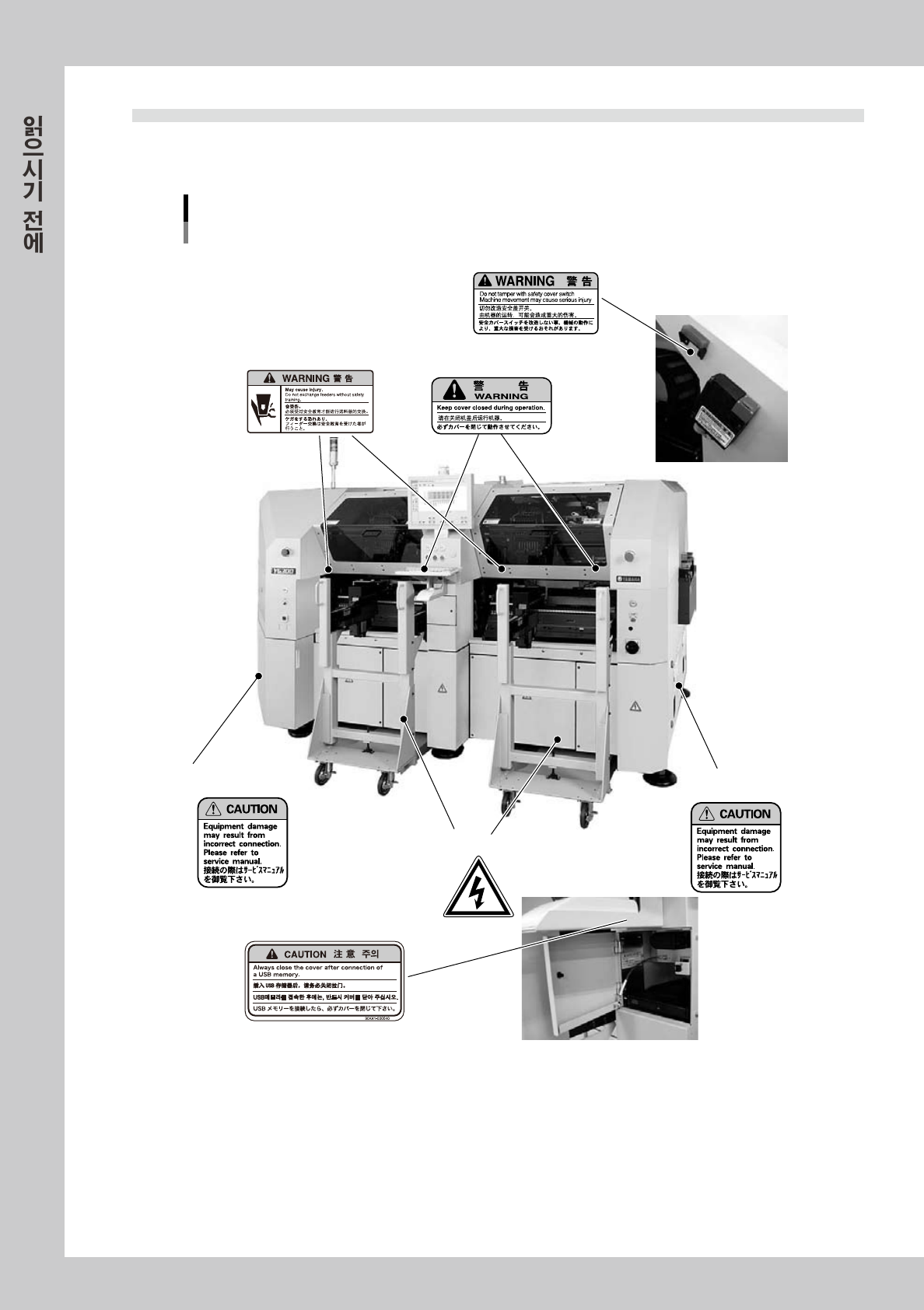 장비를 정확하고 안전하게 사용하기 위해 , 본체 및 주변기기에 아래 내용의 경고표시를 했습니다 .