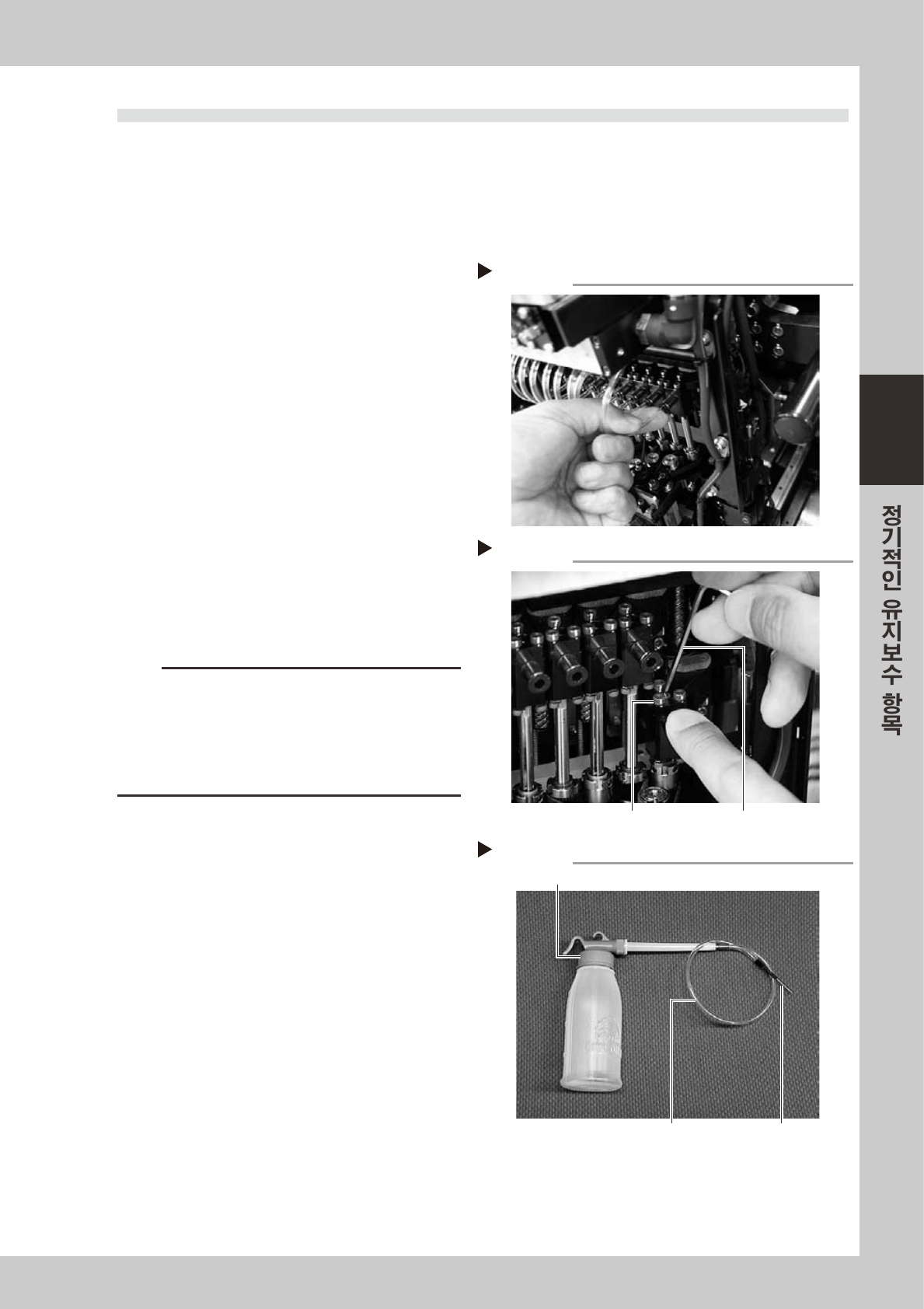 3-23 3 3 . 2 스 플 라 인 샤 프 트 안 의 청 소 • 급 유 스 플 라 인 샤 프 트 의 에 어 경 로안 에 이 물 질이 부 착 되어 있 거 나 , 오염 물 질 이 부 착 되어 흡 . 장착 에 러 발생 의 원 인이 되 는 경우 가 있 습 니다 . 통 상 6 개 월 에 한 번 정도 로 스 플 라 인 샤 프 트 안 을 청 소하 여 주 십 시오 . 3 . 2 . 1 스 플 라 인 샤 …
