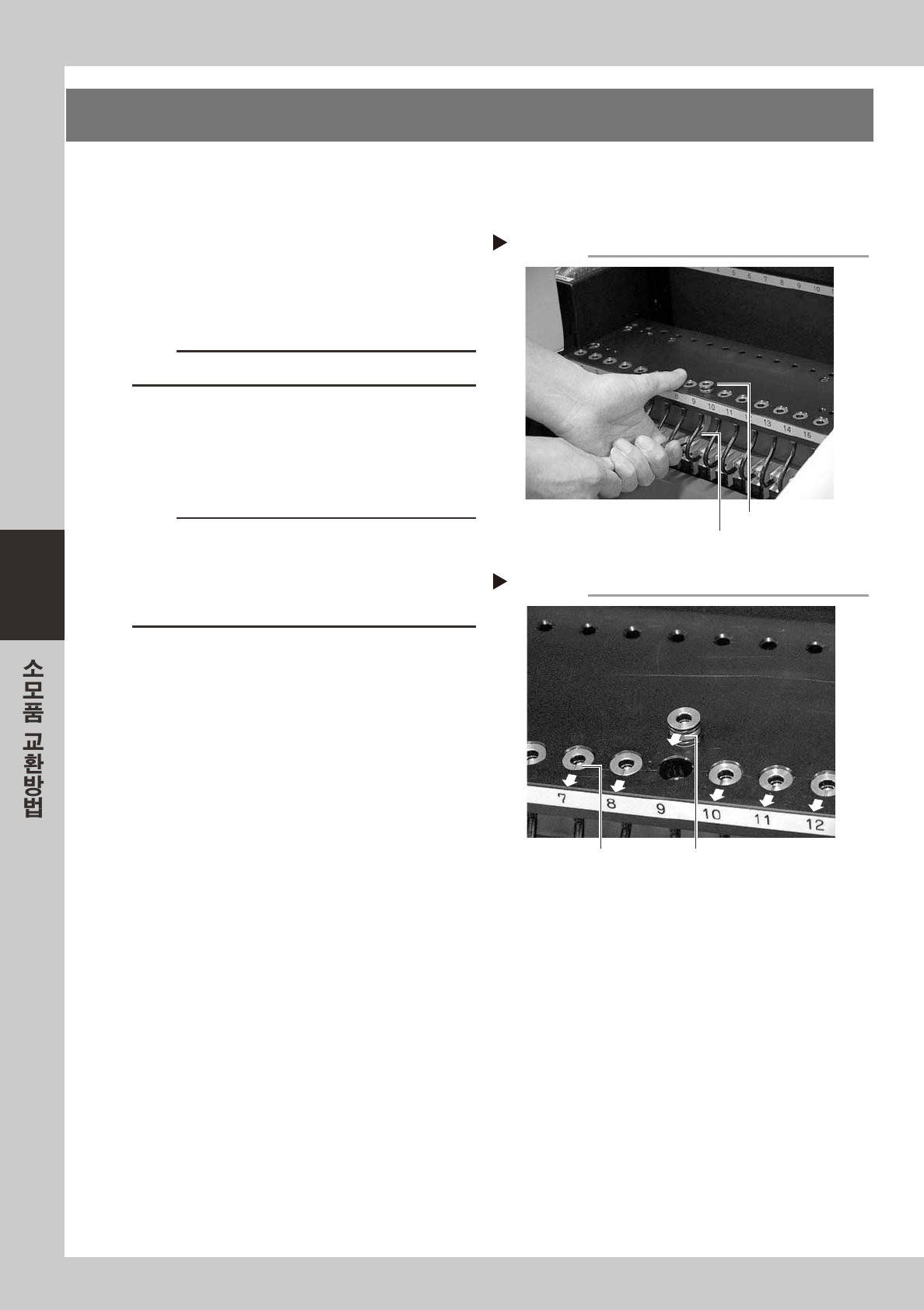 4-1 4 1. 노 즐 판 스 프 링 교 환 e 1 비 상 정 지 버 튼 을 누 릅 니 다 . 작 업을 안 전하게 하 기 위해 , 반 드 시 장 비 를 비상 정지 상 태로 하 여 주 십 시오 . 2 노 즐 을 분 리 합 니 다 . 교환 할 판 스 프링 에 있는 노즐 을 손으 로 빼 내어 주 십시오 . 3 노 즐 판 스 프링 을 분 리 …