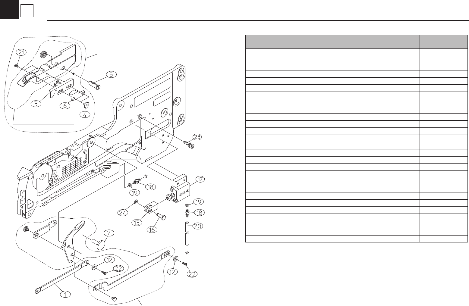 KW1-M1 131-102 KW1-M1 132-001 KW1-M1 13A-000 No. Part No. Part Name Q'ty Remarks KW1-M1 131-102 CLAMP LEVER UNIT 1 KW1-M1 132-001 CLAMP LEVER ASSY 1 KW1-M1 13A-000 CLANK ARM ASSY 1 1 2 3 4 K87-M1 13D-001 ARM 2 5 6 K…