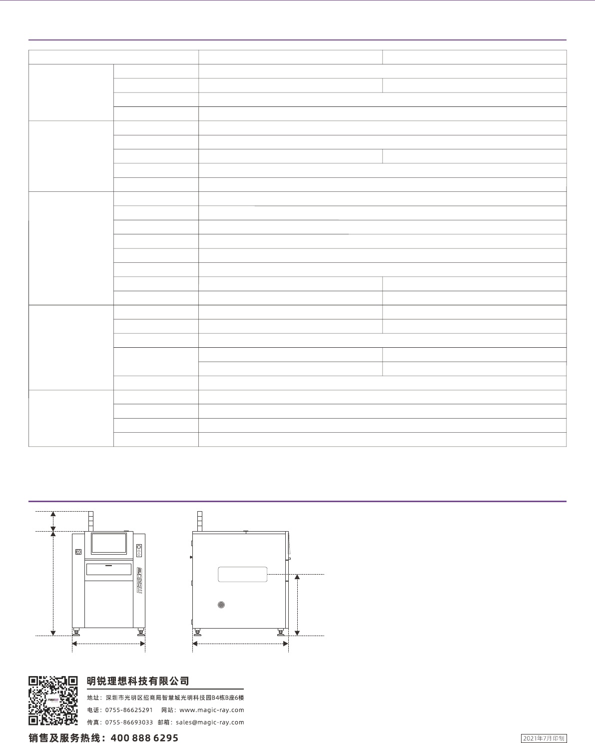 设 备型 号 V C5 0 00 ( 单 面 检测 ) V C 53 0 0 ( 双面 检 测) 影 像 系统 相 机 5 00 万 像 素 工 业相 机 ( 1 2 00 万 像 素可 选 ) 分 辨率 标 配 15 μ m , 1 0 μ m 可 选 标 配 2 4 . 5 μ m , 15 μ m 、 1 0 μ m 可 选 镜 头 远 心 镜 头 光 源 U V 光+ R G B / U V 光+顶 部 红 光 ( 仅 检 测三…